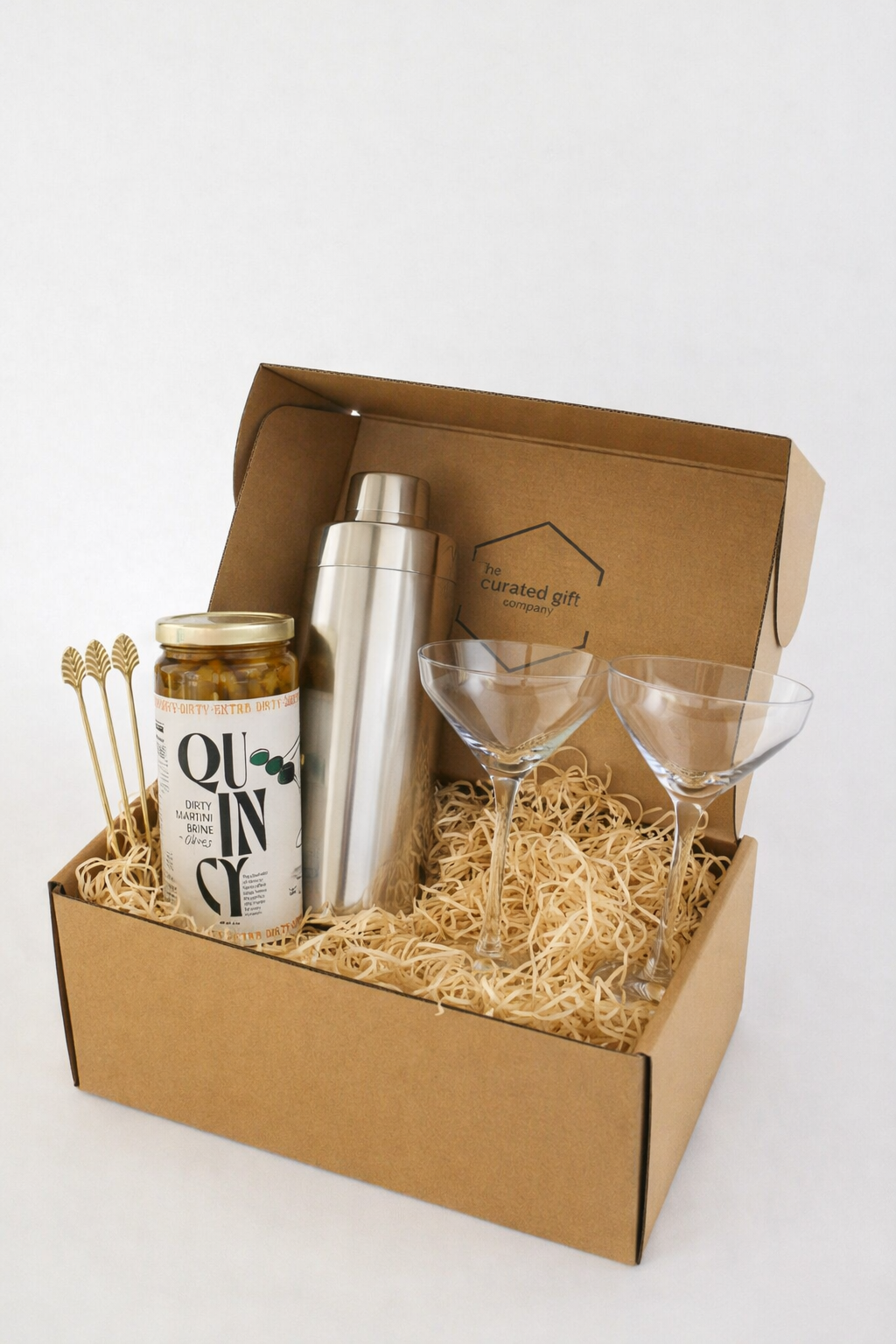 Meet Extra Dirty: a sophisticated cocktail set curated for those who appreciate the art of a perfectly dirty martini. This elevated gift box includes everything needed to craft the ultimate bar-quality cocktail at home.